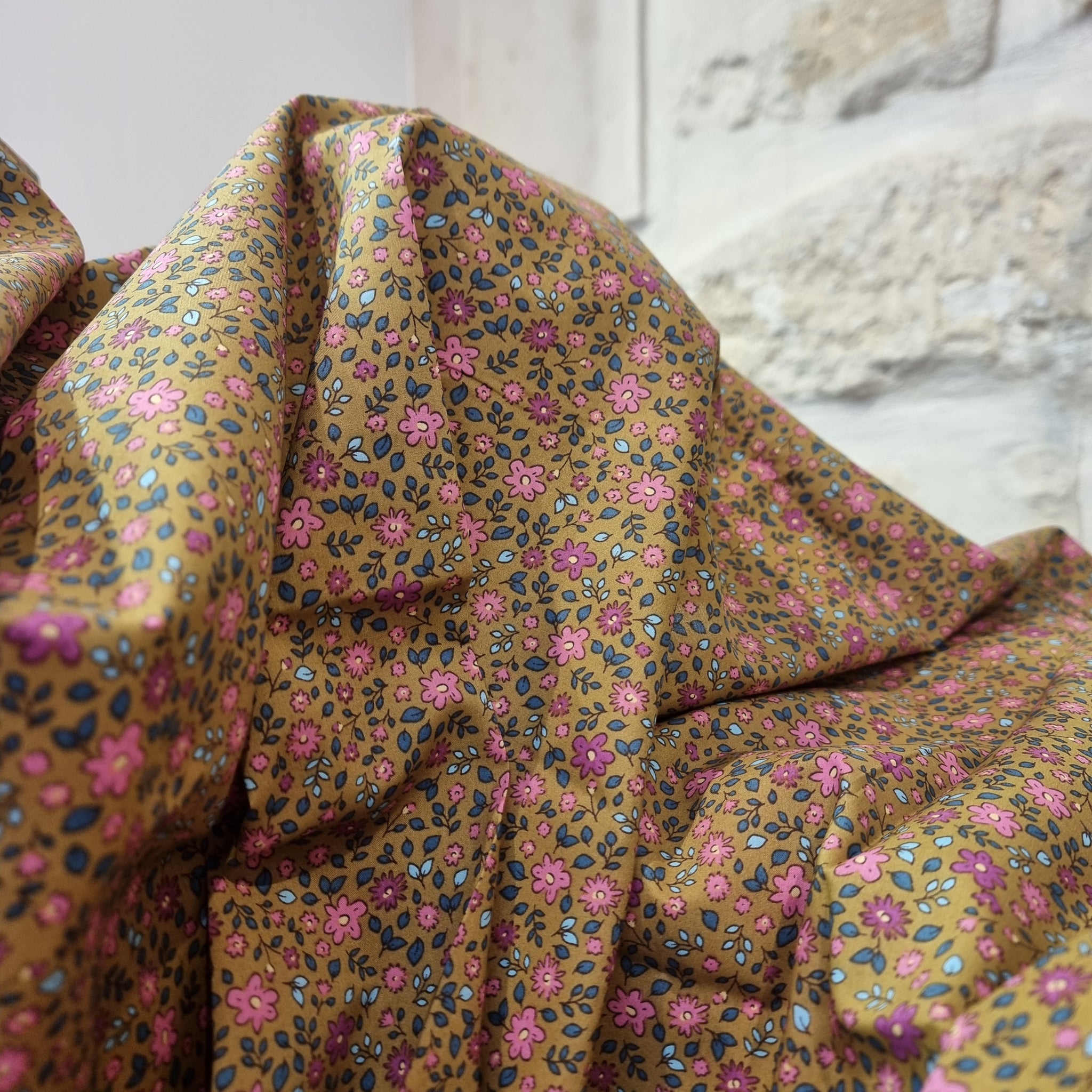 Succombez au charme bucolique de cette popeline en 100% coton, ornée d’un délicat motif floral dans des tons havane et rose. Une matière légère, douce et fluide, parfaite pour toutes vos créations vestimentaires et d’accessoires au style romantique et intemporel.